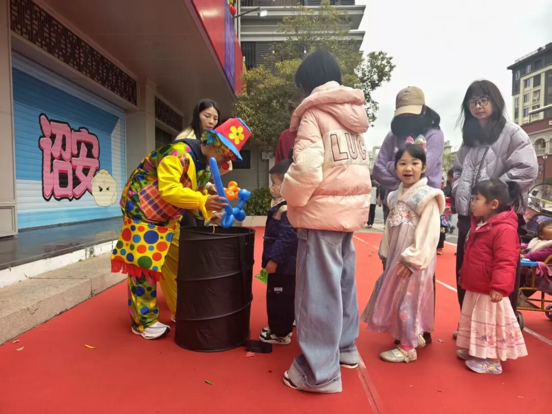 上午,“骏马欢腾”小丑童趣气球秀欢乐开场,可爱小丑现场编织骏马、元宝等马年主题造型气球,与游客亲切互动、免费派送,孩子们欢呼雀跃,笑声此起彼伏。