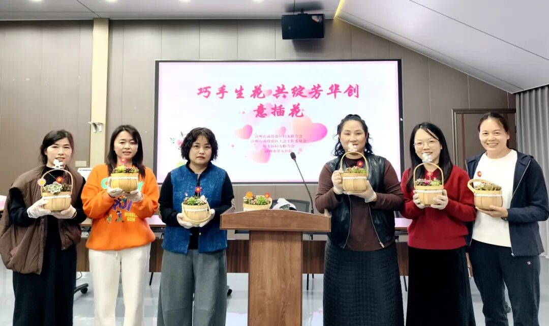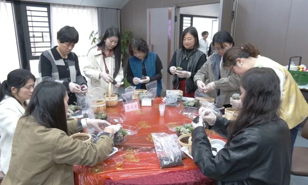 最具温情的当属“巧手生花 共绽芳华”插花环节。专业花艺老师为各级妇联组织代表、女台胞们细致讲解了多肉品种、种植技巧与日常养护知识,大家手持工具,搭配多肉植株、创意花盆与装饰摆件,精心栽种专属盆栽,现场氛围轻松愉悦。大家相互交流构思、分享心得,在动手实践中感受自然之美,体验创作乐趣,欢声笑语不断。