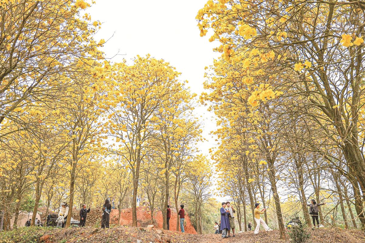 周末春意正酣,长泰区陈巷镇池头村九洋自然村200余亩黄花风铃木迎来盛花期,枝头簇簇金黄如风铃摇曳,与远山绿树勾勒出醉人的春日画卷。