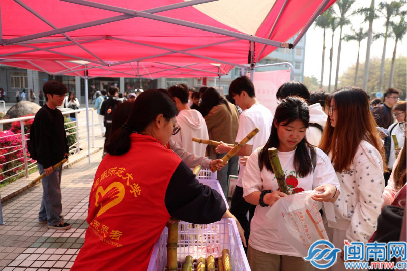 闽南网3月25日讯(通讯员 陈秋燕 闽南网记者 张恩培)3月23日,约2000斤新鲜甘蔗在校园亮相,免费分享给师生品尝。这批果蔗并非普通农产品,而是闽南师范大学与漳州嘉恒农业有限公司、福建省海新集团通过校企合作,运用生态农业技术共同种植的成果。