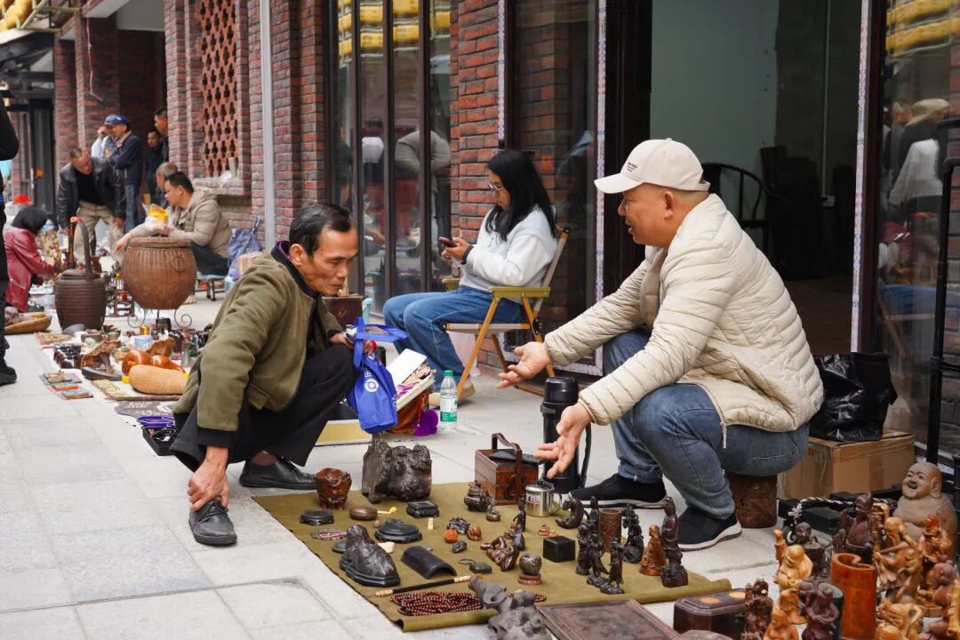 今年1月,“龙江雅市”在鹭洲路启幕,“古玩一条街”正式推向公众。如今,这里已汇聚文创古玩、中医药膳等多元业态商户100多家,每逢周末,藏家与游客穿梭其间,在讨价还价中完成一场跨越时空的对话。