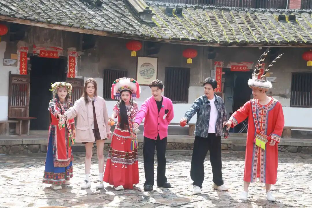 三位嘉宾被现场热烈的氛围感染,主动加入其中,与畲族姑娘一同起舞,沉浸式融入浓郁的畲乡民俗氛围。舞蹈结束后,畲族姑娘们为嘉宾们献上寓意吉祥的山哈带,传递畲乡人民的真挚情谊。随后,嘉宾们沿着清幽的茗香古道漫步,切身感受华安原生态的山水景致,呼吸林间清新空气,尽享自然生态带来的惬意。