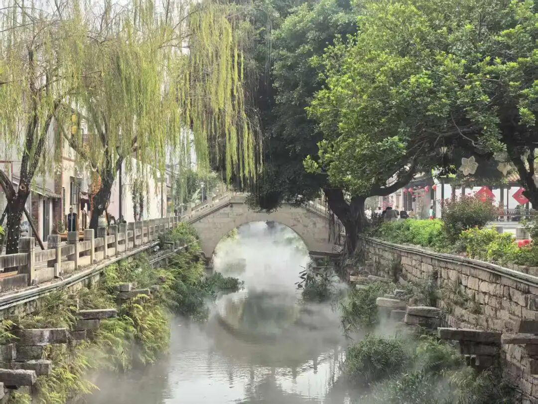 要说热门出片地,东宋河上的云水桥一定占有一席之地。2024年景观升级后,这里不仅水清岸绿,还增设了雾化景观装置,桥下喷出的气雾缭绕,仿佛仙境一般。连本地人路过,都忍不住掏出手机拍上几张。