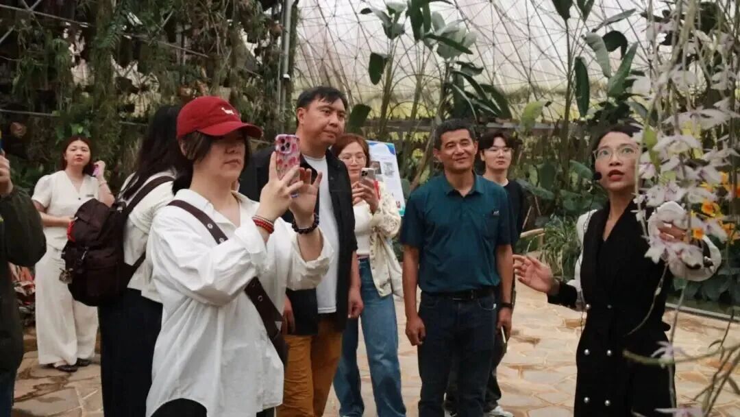 最后一站,采风团来到古农农场唐宋花仙谷。园区内东南亚风情景观与奇花异果交相辉映,展现出长泰农文旅融合的另一番精致面貌。嘉宾们实地考察了苷茶、树葡萄等特色经济作物的种植情况,对长泰深耕“旅游+农业+康养”新模式的探索成果给予高度评价。而作为“东道主”,花仙谷也做起了“自我推介”。