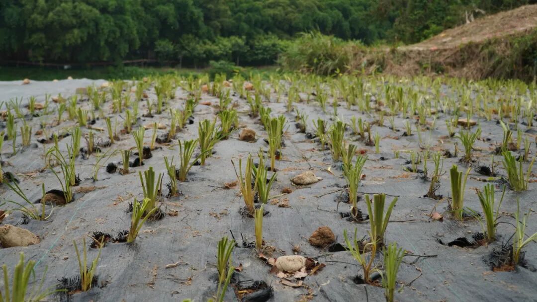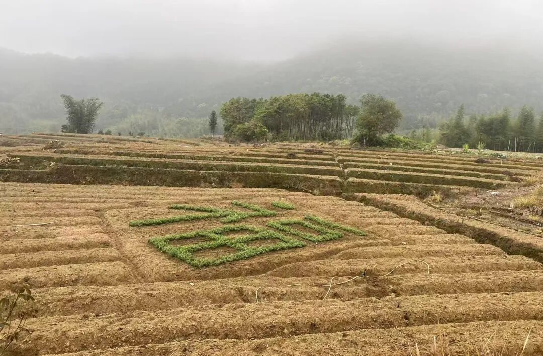 项目已完成土地平整、灌溉设施铺设等基础工作,核心区域用长青植物满天星打造“福”字造型景观,外围连片种植黄花菜。待到花期,金黄心形花海与翠绿“福”字相映成趣,形成强烈视觉反差,既是福田村寓意“福气满满”的文化景观,也是极具辨识度的打卡点。