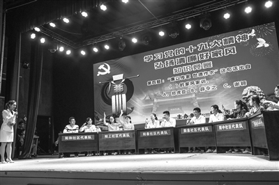 福安阳头街道举办知识竞赛 弘扬清廉好家风 闽东日报 2017-11-14 16:27 11月10日晚,福安市阳头街道举办“学习党的十九大精神,弘扬清廉好家风”知识竞赛,所辖6个社区组队参赛,现场观众也积极参与互动答题,共学党的十九大精神。 (吴庆堂 吴其文 摄)