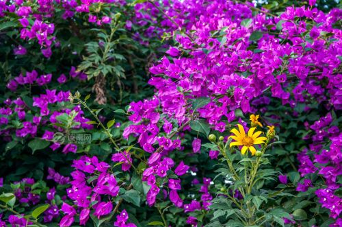 三角梅与野菊花 泉州田安大桥自然风光摄影