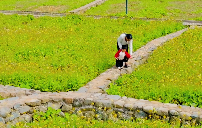他们有的在花间小道上自在奔跑嬉戏,