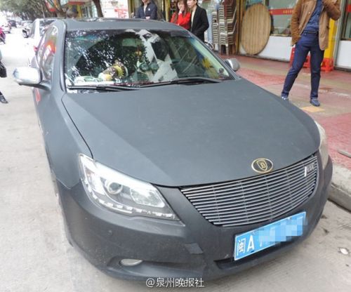 明明是比亚迪小车,因为好玩,就将车标改成酷似宾利,并将外漆漆成磨砂,车主林某为他的爱面子付出了代价,因为擅自改动机动车特征,被处以1500元罚款。
