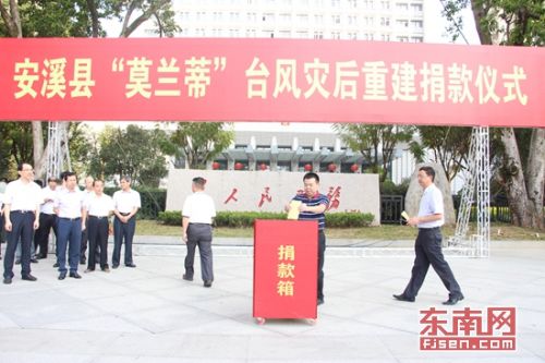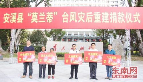 9月20日上午,安溪县委、县政府在安溪县人民广场举行“莫兰蒂”台风灾后重建捐赠仪式,短短一小时不到便募集2118万爱心款。