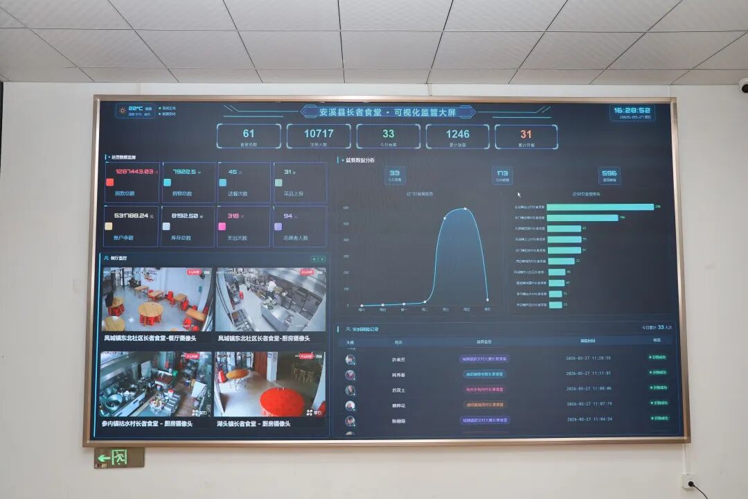 这简单的“一刷”,依托的是安溪县为破解长者食堂“重建轻管”构建的可视化监管系统。在全县61家长者食堂、年服务超16万人次的规模下,安溪县正从“建了多少”转向“管好什么”。