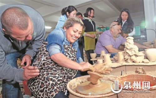 美国客商德化学手拉坯 希望把德化瓷器推广到家乡