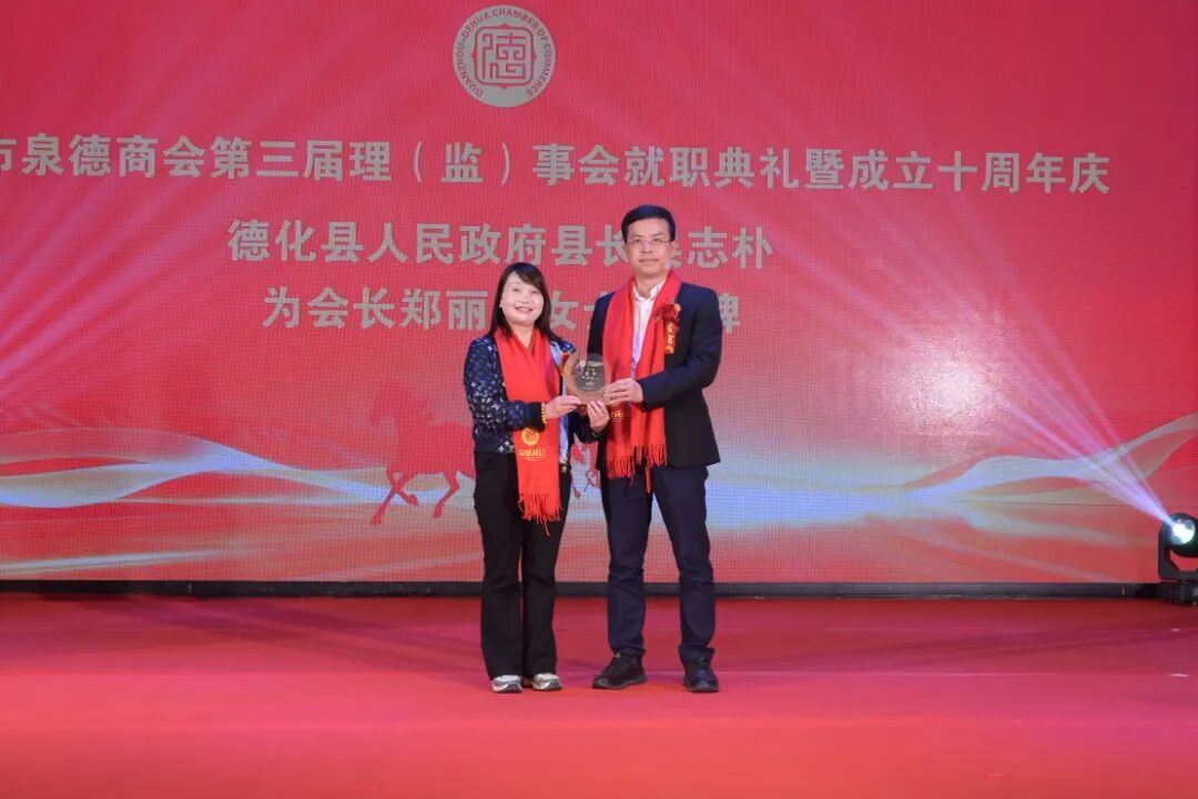 3月20日,泉州市泉德商会第三届理监事会就职典礼在泉州举行。会议为新当选的会长、监事长、秘书长、荣誉会长、副会长授牌。德化县县长吴志朴出席并致辞。