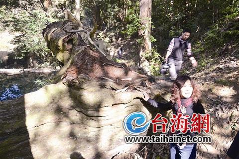 德化戴云山千年红豆杉被刮倒2年多 仍保护完好 2015-02-07 11:29 来源:海峡导报 0 倒地千年红豆杉 保护完好 日前,泉州市德化县戴云山国家级自然保护区工作人员陈文伟巡山时,在德化县上涌镇后宅村黄上林沟仔尾,发现了一株连根拔起倒地的千年红豆杉保护完好。 这株红豆杉树头足有一人多高,横跨过小溪栽倒在对岸,主体部分完好,长约20米,尾部浸在水里。这里树荫浓密,环境阴湿,倒地的红豆杉并没有腐烂迹象。 “2012年7月,由于受台风影响才倒地的。”据陈文伟介绍,这株属“福建古树名木”,于1997年挂牌保护的红豆杉树龄有1000余年了。(记者 郭冰德 通讯员 李宏图 文/图)