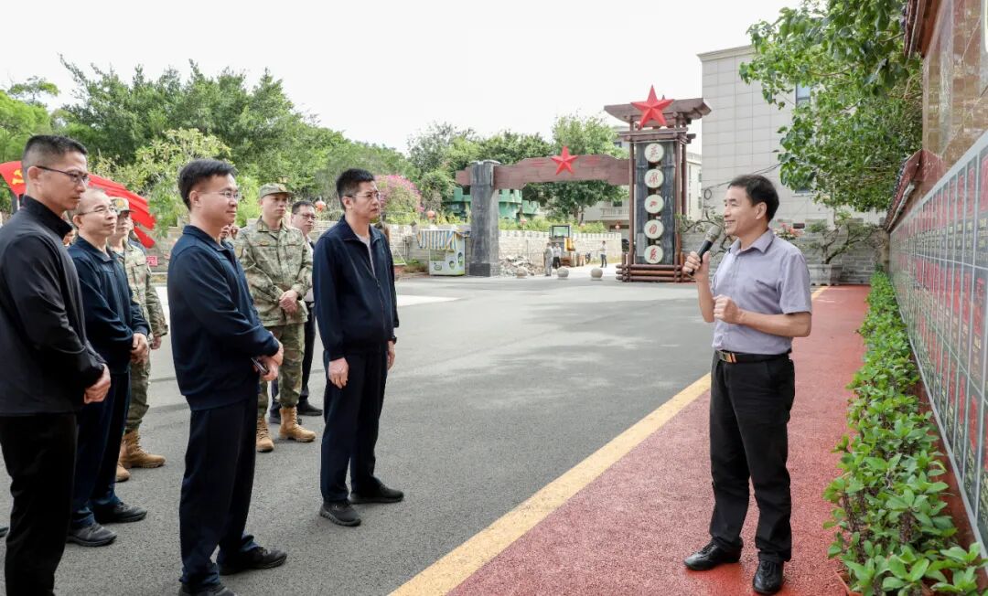 在驻泉某部队营区,区领导参观了营区设施,听取部队基本情况介绍,并现场观摩了官兵的操练演示。随后,他们前往围头村八二三战地公园,在讲解员的引导下参观了战地遗址和纪念馆,重温革命先辈在炮火中保家卫国、视死如归的英雄事迹;通过了解围头村从“海峡炮战第一村”发展为“两岸通婚第一村”,再成为“闽台融合发展第一村”的历程,进一步增强了对闽台历史渊源和融合发展的认同感与使命感。