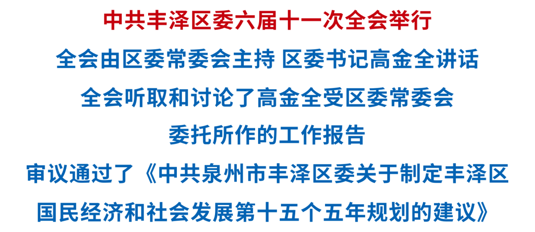 中国共产党泉州市丰泽区第六届委员会第十一次全体会议,于2025年12月4日在丰泽举行。