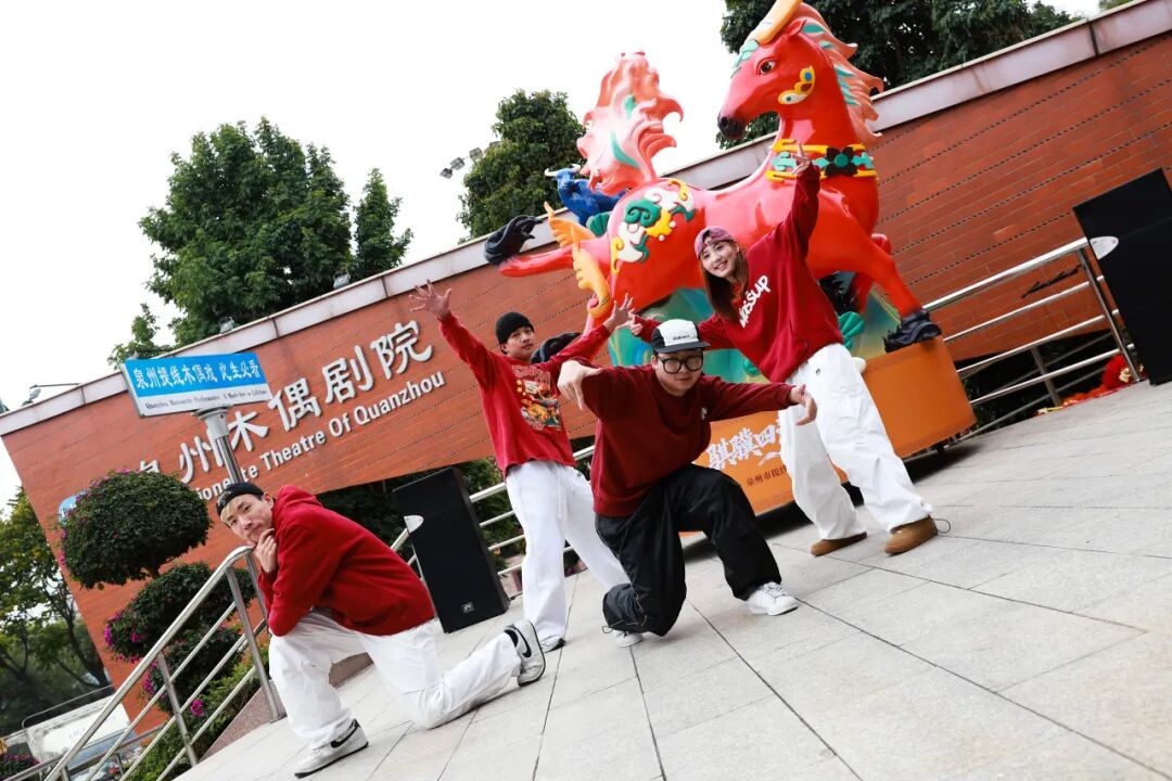 活动期间,闽南风情木偶表演与现代街舞快闪接连登场、惊艳亮相。非遗木偶的精巧灵动,搭配现代街舞的动感张扬,刚柔并济、古今相融,瞬间点燃全场热情,营造出古朴与活力交融的独特文化氛围。