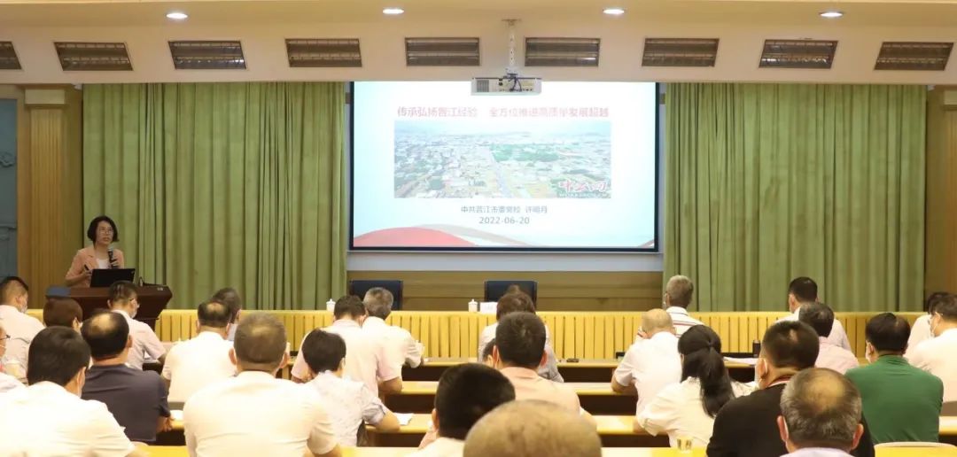 会议邀请晋江市委党校经济学高级讲师许明月作《传承弘扬晋江经验 全方位推进高质量发展超越》专题辅导讲座。讲座围绕“晋江经验”提出的背景和意义、深刻内涵与时代价值等方面进行详细解读,内容深入浅出、案例丰富、令人深思,为今后传承弘扬“晋江经验”,全方位高质量建设“品质名城·现代都市”提供了重要指引。