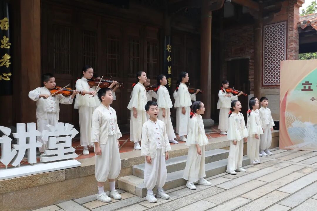 这是由鲤城区新时代文明实践中心、区教育局、开元街道办事处、泉州市通政中心小学共同举办的“立德传薪·书院雅集”小山丛竹新时代文明实践研学活动。“书院曾是先贤讲学论道之地,一砖一瓦都浸润着治学修身的智慧与风骨。把课堂搬进古代书院,就是希望孩子们在行走中触摸历史、感悟文脉,让思政教育不再是书本上的文字,而成为可听、可观、可感的真实体验。”学校党委书记曾凤蓉介绍道。