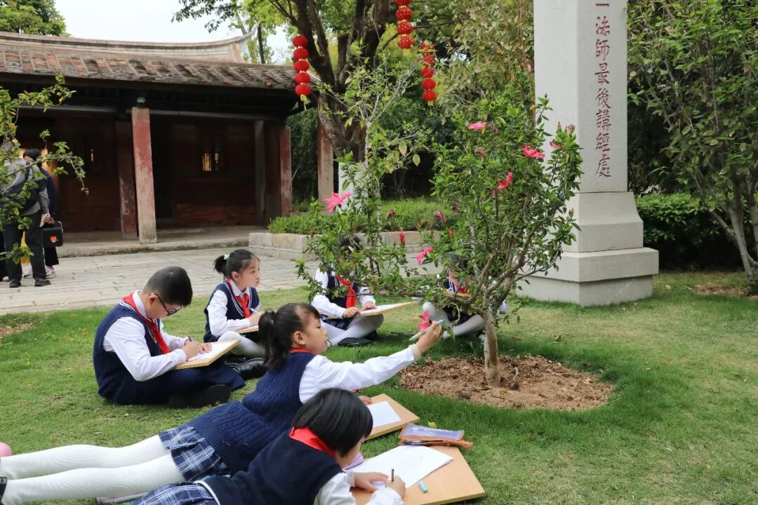 “通过研学,我们知道不二祠是纪念唐代闽南第一进士欧阳詹的地方、朱熹曾在书院讲学、晚晴室是弘一法师最后的居所。”今年10岁的沈俊坤同学如数家珍地盘点着此行收获。年纪尚小的他对于先贤的思想还不能完全理解,可置身于书院,清幽的书香氛围让他绘画时更专注认真。