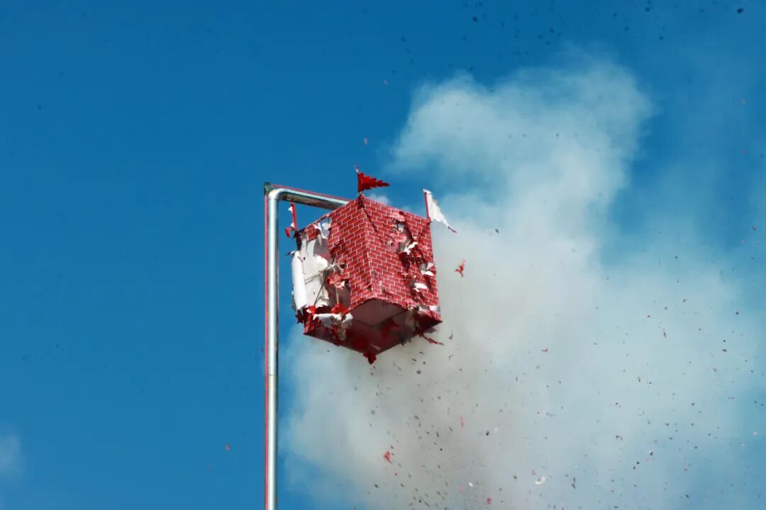 随后,作为活动的“重头戏”——攻炮城民俗体验在洪四村社仔园广场火热开场。高达十米的方形“炮城”巍然矗立,城楼四角彩旗猎猎,炮手们轮番上阵,在震耳欲聋的鞭炮声与漫天升腾的白烟中迎接新一年的到来。