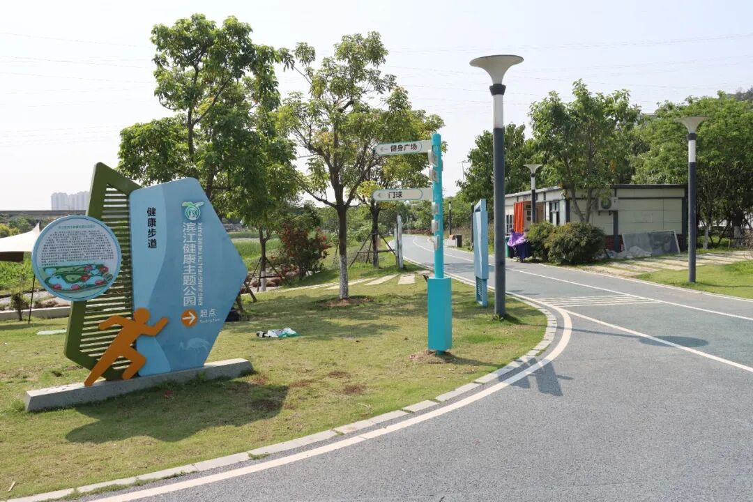 在位于洛阳江畔的滨江健康主题公园内,居民们或快走或慢跑,健身步道上每隔一段距离就设有健康知识提示牌和行程标识,成为深受市民欢迎的休闲健身乐园。