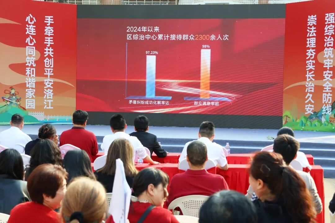 现场群众共同观看洛江区综治中心宣传片,了解洛江区综治中心的工作职能、基层治理成效,感受洛江平安建设的丰硕成果。