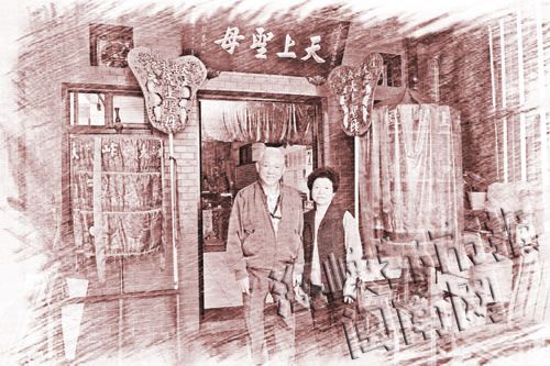 12月7日清晨,入船里邮局门口,“大岞东宫”几个字的箭头标示,尤为亲切。81岁的张细山和老伴苏碧英从不远处的家里骑车过来迎接,跨过长长的阶梯和弯曲的道路,“大岞东宫”坐落在半山腰的2楼,一楼入口处写着“湄洲妈祖庙欢迎光临”,庙门紧锁。