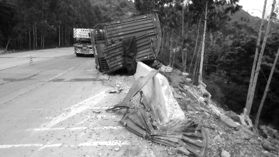 “实在没办法,情急中只能采取连续撞击路边的防撞墩来减速停车。”“如果没有防撞墙,我们就直接冲下高度近200米的陡崖,后果真是不堪设想。”货车司机心有余悸地说道。