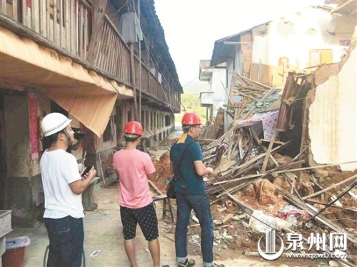 技术人员前往永春支援重建:穿梭在危房间 鉴定受损房屋