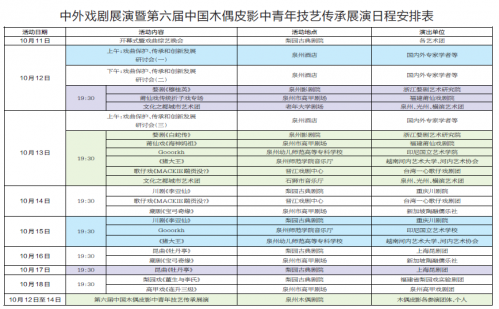 中外戏剧展演暨第六届中国木偶皮影中青年技艺传承展演日程安排表