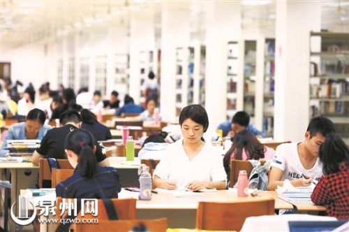昨日的泉州师院图书馆里,坐满了准备冲刺考研的学生。(林劲峰 摄)