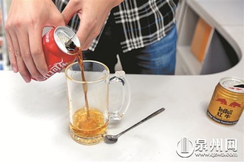 可乐加红牛炸出"蘑菇云"泡沫?记者实验未出现该现象