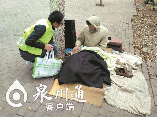 泉州志愿者救助流浪人员 “暖冬”驱赶寒意(图)