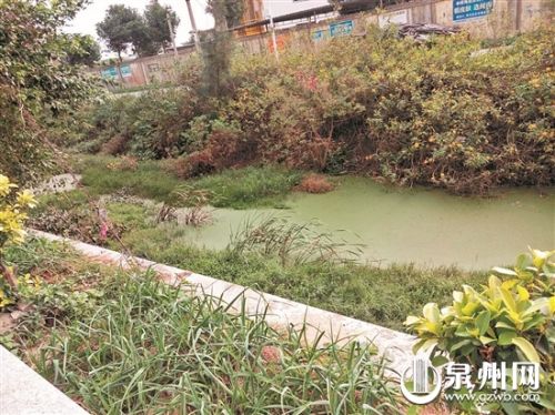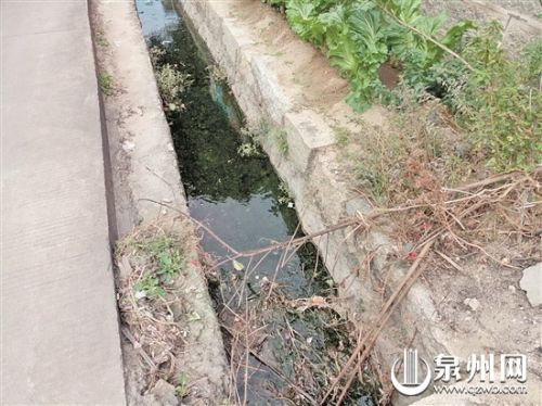 刚进入玉埕村,走在水泥路的村道中,尽管水泥路板有些旧,但路面还是挺干净的,家家户户的门口不见随意堆放的垃圾。不过,在千艺幼儿园校园的围墙外堆放着几处沙土、石块,有些废弃的建筑材料如沙、砖块堆放在树下。村里的一条排洪渠沟,发出酸臭味,水面上铺了很多藻类物。据悉,这条排洪沟渠全长2公里多,因处于下游,很多上游垃圾漂流下来,堆积在这里,水又是死水,所以保洁起来相当困难。村中一些小水沟,虽然垃圾有清理,但水沟里的水都是黑乎乎的,因为水沟没有盖起来,所以有些酸臭味道发出。