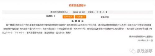 近日,泉州市行政服务中心发出公告,