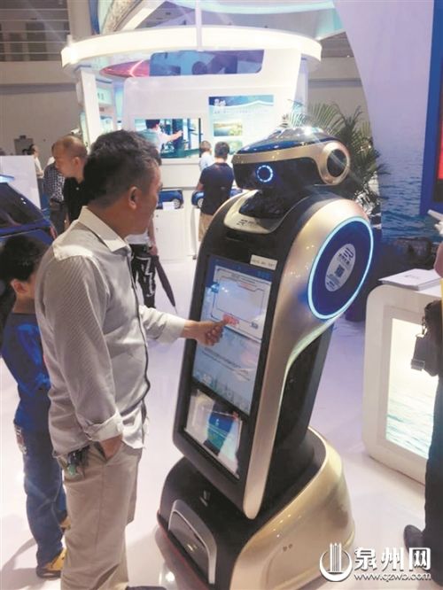 泉州市类金融机构投资研发的智能机器人吸引参观者与之互动