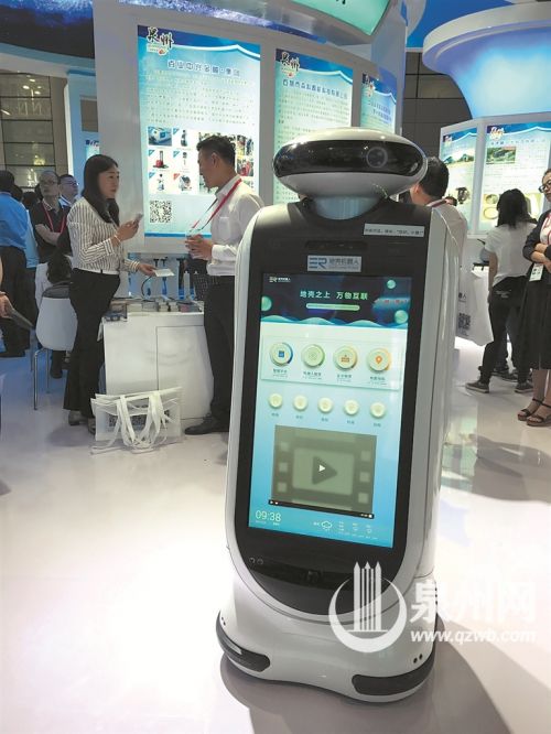 说起来您可能不信,其实这个“小智”是个机器人,昨天,它和它的“妹妹”——第二代机器人“小慧”都来到了“6·18”泉州馆,一边用身上的大屏幕播放泉州产业发展情况,一边还与过往客商“对答如流”,十分可爱。