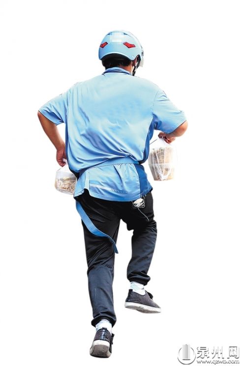 只见他将电动车麻利地停在市区泉秀街附近的俊伟写字楼楼下停车场,从送餐箱里拿出一份快餐,边打电话边往楼梯间跑去。
