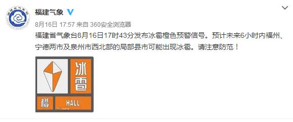 其实关于这次冰雹,福建气象昨天就有发布冰雹橙色预警
