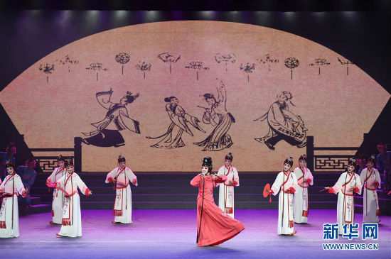 8月17日,福建省歌舞剧院的演员在表演展示惠安女服饰的舞蹈。