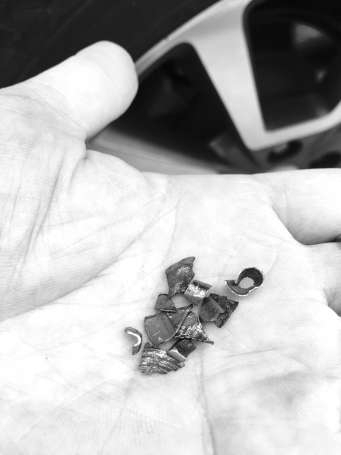 此后,李先生将车开到修理厂检查,发现轮胎嵌着30余块大大小小的碎铁片,最大的铁片有一节大拇指的面积。