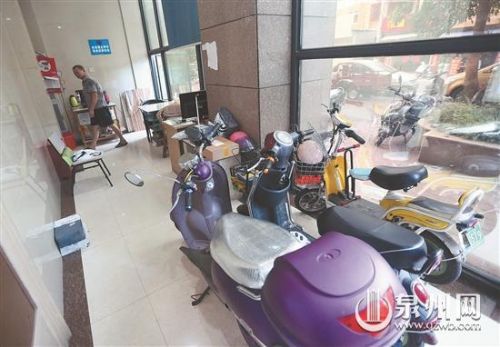 进入大门,记者看到大楼一层没有大厅,只有一圈一米多宽的通道,此时通道内也停放了八九辆电动车,有三辆电动车并排停放在入口处,并不宽敞的通道仅能容一个人通过。“一到下雨天,楼内通道更拥挤,很多人都把电动车骑进来停放,居民出入都很困难。”陈女士说,业主们之所以将电动车骑进楼下通道,一是因为大楼外停车地方少,原先物业承诺建的电动车停车棚迟迟没有动工,此外就是担心被盗。小区物业对此没有积极管理措施,电动车挤占出入通道,一旦发生火灾,居民的逃生通道将被堵。