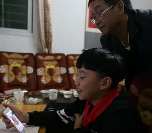 爷爷告诉我们,之前视频臭臭很皮,会用手指指着自己的头,“嘣”的一声,表演晕倒,逗大家笑。哥哥说,臭臭会欺负他,有次用手打到他的眼睛,他哭了,结果妹妹赶紧拿纸巾给他擦眼泪。