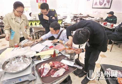 随后,执法人员又对古乐牛香南俊路店进行了检查,同样也对店内的牛肉和牛肚进行取样送检,东南早报也将继续关注抽检结果。(记者李菁 王柏峰 文/图)