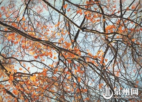 昨日,冷空气暂歇,清源山风景区的枫叶红红火火。(王柏峰 摄)