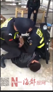 闽南网1月26日讯 前天下午3点多,泉州鲤城区城西路泉州旧油厂空地,一名男子将一名看护曾氏大宗祠的70岁阿伯挟持,并按在30米外一家洗车店门口的椅子上,用锤子朝头上猛砸。昨日,巡特警队员抓捕这名男子的视频在微信热传。