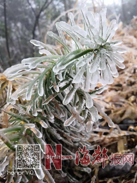 而在南平,邵武金坑乡、桂林乡等地区,也出现雨雪天气,除了地面的积雪外,随处可见雾凇、冰花等景观。