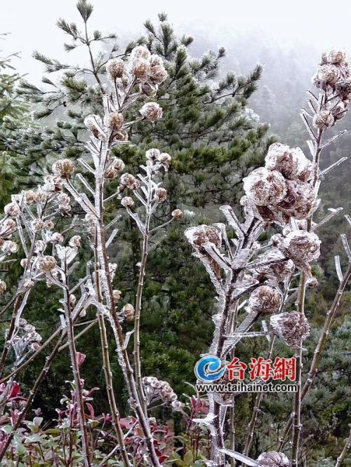 据德化县气象台工作人员介绍,29日早上7点多,九仙山就出现了雨凇——超冷却的雨水碰到气温等于或低于0℃时,结成的晶状体。