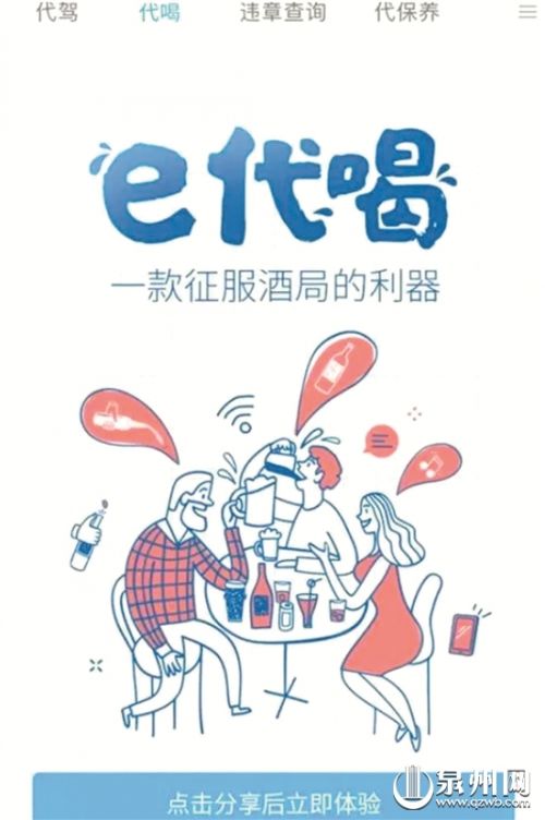 日前,一款名为“e代喝”的平台在“e代驾”App上线,涵盖北京、上海、广州等全国36个主要城市。该项服务与代驾App联合运行,已拥有了1万名以上的代喝人。打开e代驾App客户端,可看到该应用的“入口”,页面上称,这是“一款征服酒局的利器”,完成用户定位后,选择“找人代喝”实现精确搜索。而且,用户可根据“按酒量”“按标签”“按距离”等类别针对性寻找“代喝牛人”,同时,也可以注册成为“代喝牛人”。